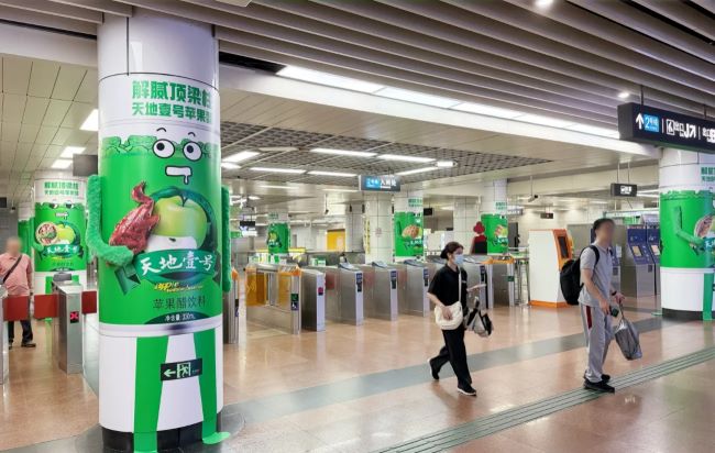 廣州地鐵公園前站站廳層22根包柱在站廳層分布于乘客行進路徑交匯處,構成分布式視覺矩陣,視線無法回避實現(xiàn)360度無死角展示,密集布局使乘客在站廳活動時多次接觸廣告信息,單人次可實現(xiàn)3-5次品牌觸達。圓柱形結構確保各方向客流均可捕獲廣告信息,結合創(chuàng)意包裝可形成強烈視覺記憶點,通過立體裝飾延伸視覺維度,將廣告轉化為互動打卡點,激發(fā)社交媒體二次傳播,顯著提升廣告附加價值。級客流量,可實現(xiàn)理想的千次曝光成本。