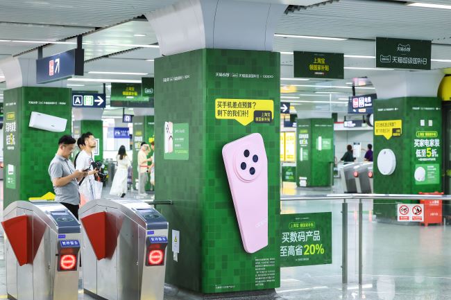 杭州地鐵鳳起路站站廳層品牌森林廣告通過包柱與吊旗的組合,在站廳層構(gòu)建了一個(gè)多維度的品牌展示空間。立柱通常位于乘客動(dòng)線的核心區(qū)域或關(guān)鍵節(jié)點(diǎn)。創(chuàng)意包柱廣告因此能夠?qū)崿F(xiàn)多角度、近距離的曝光,確保信息高效傳遞。結(jié)合吊旗從上至下的視覺引導(dǎo),共同在有限的站廳空間內(nèi)營(yíng)造出豐富多元、活力滿滿的視覺盛景。多根立柱同時(shí)進(jìn)行創(chuàng)意包柱,形成了規(guī)模化的媒體矩陣。這種陣列式布局能對(duì)穿行其間的乘客產(chǎn)生持續(xù)的視覺影響,營(yíng)造出強(qiáng)烈的品牌陣勢(shì)和包圍感。