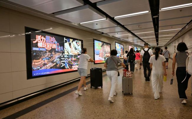 香港西九龍高鐵站通道墻面燈箱廣告位于海關(guān)查驗(yàn)區(qū)與交通接駁區(qū)過渡帶,所有旅客必須減速通過;8塊燈箱沿通道線性布局,形成總長(zhǎng)近24米的品牌展示墻。旅客行進(jìn)中可持續(xù)接觸多塊畫面,實(shí)現(xiàn)重復(fù)曝光強(qiáng)化。燈箱安裝高度1.3-1.5米,閱讀距離僅0.8-2米,視覺沖擊力遠(yuǎn)超高空媒體。靜態(tài)畫面持久展示,不受輪播時(shí)間限制,確保每位旅客接收完整信息。