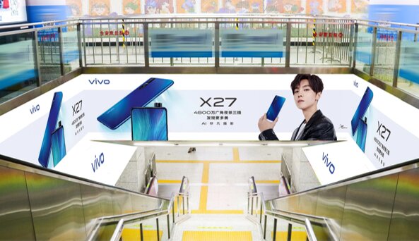 媒體形式:U型墻貼 ??????地鐵線路:1/2號線 媒體位置:站廳到站臺層主樓梯兩側(cè)的墻面