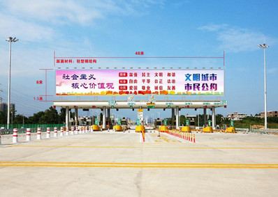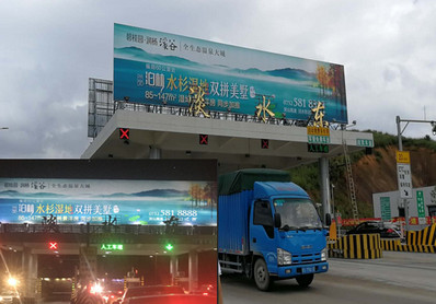 媒體位置:沙澳收費站站頂廣告牌 媒體可視面積:48m*6m*2面*3翻 媒體報價:120萬/年/面