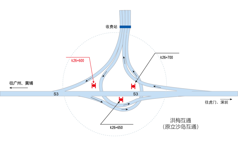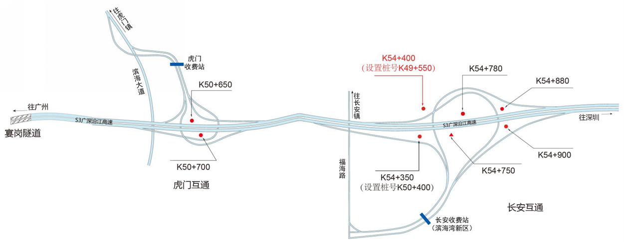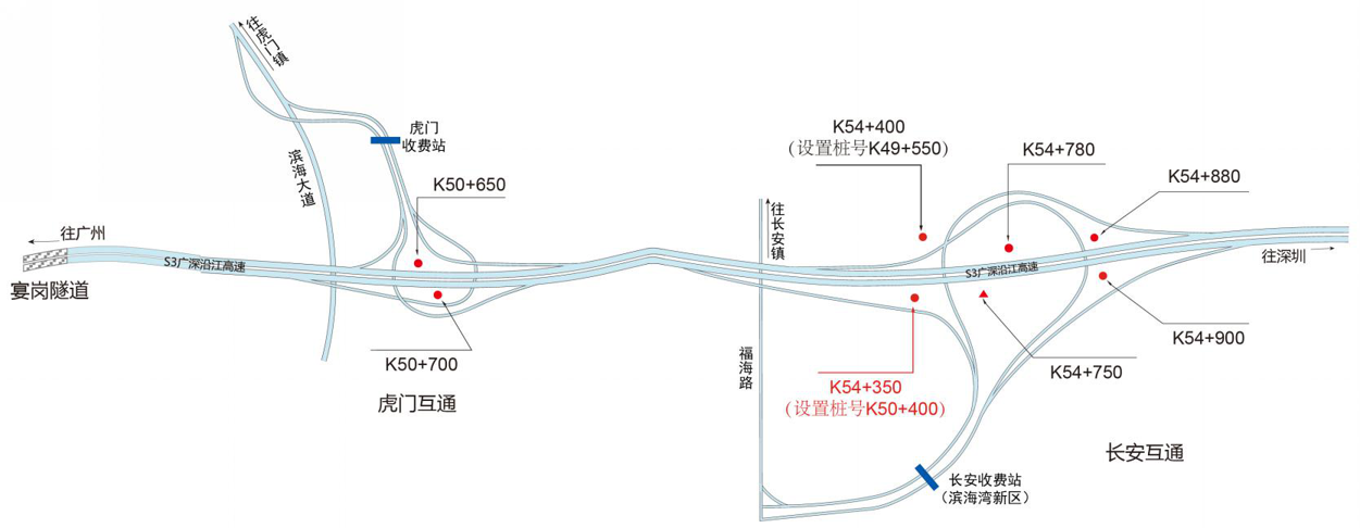 ???????廣深沿江高速公路在沿途設(shè)置12大互通:官田互通、夏港互通,南崗互通,麻涌互通(連接西部干道)、新立沙島互通、洪梅互通(連接鎮(zhèn)際聯(lián)網(wǎng)路5號(hào)路)、民田互通、沙田互通(南沙大橋互通)、虎門港互通(待建)、威遠(yuǎn)互通、虎門互通以及長(zhǎng)安互通(連接福海路、?;⒏咚傥妩c(diǎn)梅長(zhǎng)安港支線)、服務(wù)區(qū)一對(duì)(麻涌服務(wù)區(qū))。