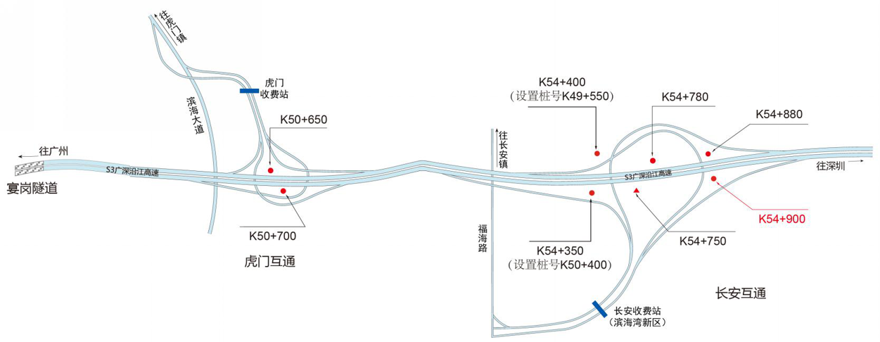 ?????? 廣深沿江高速公路項(xiàng)目起點(diǎn)接廣州黃埔雙沙107國(guó)道(黃埔東路),沿途銜接?xùn)|二環(huán)高速公路、番莞高速公路(虎門二橋)、?;⒏咚俟坊㈤T港支線二期(規(guī)劃)、虎門大橋、?;⒏咚俟烽L(zhǎng)安港支線(規(guī)劃),終點(diǎn)順接廣深沿江高速公路深圳段、深港西部通道直達(dá)香港。項(xiàng)目途經(jīng)廣州市黃埔區(qū),東莞市麻涌鎮(zhèn)、洪梅鎮(zhèn)、道滘鎮(zhèn)、沙田鎮(zhèn)、虎門鎮(zhèn)、長(zhǎng)安鎮(zhèn),工程起于廣州黃埔區(qū)黃埔大道雙崗天橋,止于長(zhǎng)安東寶河,設(shè)官田、開發(fā)、南崗、麻涌、立沙島、洪梅、沙田、虎門港(預(yù)留)、威遠(yuǎn)、虎門、長(zhǎng)安等11處互通立交。