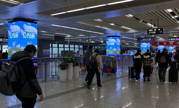 深圳北站候車廳安檢口上方數(shù)字燈箱廣告