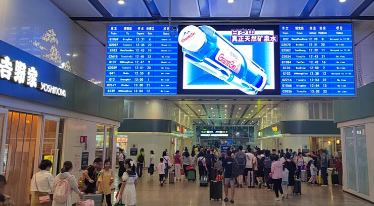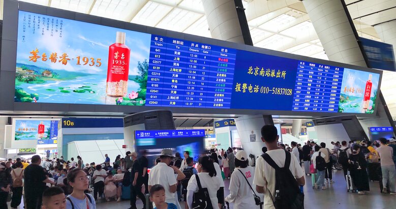 北京南站地鐵匯集區(qū)中庭超薄拉布燈箱廣告