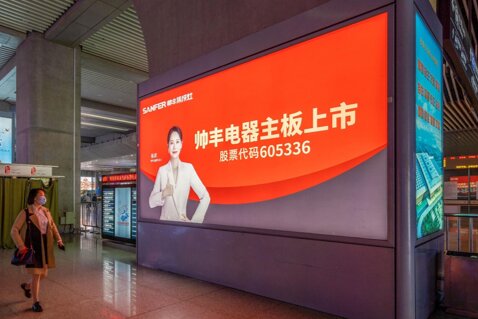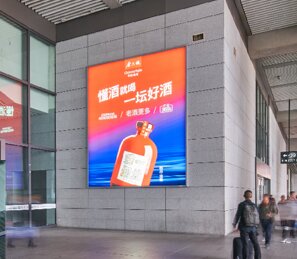 媒體位置/形式:出發(fā)層候車大廳巨型墻面燈箱 媒體編號(hào):GD53、GD54 媒體數(shù)量:1塊/組,共2塊 媒體尺寸:23m*4.5m*1面 媒體報(bào)價(jià):50萬元/月/組