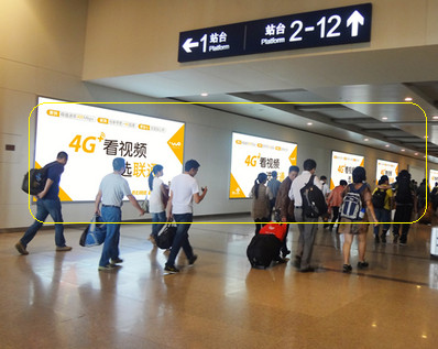 媒體位置/形式:西站房候車夾層燈箱 媒體編號(hào):HJ-QD01~02 媒體尺寸(高*寬):2.4*7.2/塊 媒體數(shù)量:2塊 媒體報(bào)價(jià):7萬(wàn)元/塊/月 媒體制作費(fèi):0.25萬(wàn)元/塊/次 |