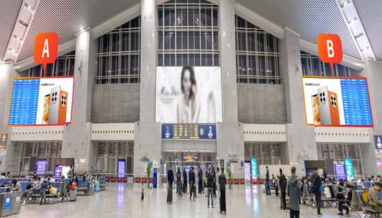 媒體位置:一層候車大廳時(shí)刻表兩側(cè)燈箱