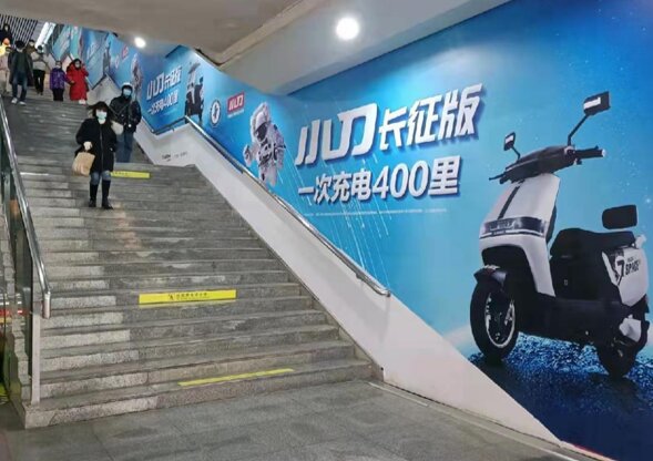 媒體位置/形式:到達(dá)層城際站出站樓梯大型墻貼