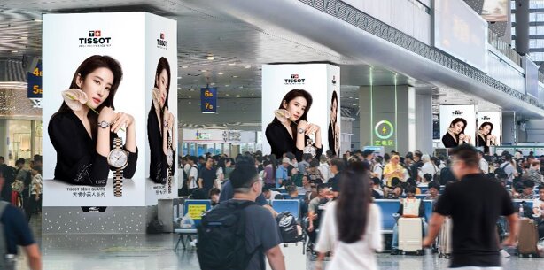 媒體位置:出發(fā)層候車廳三角品牌柱燈箱