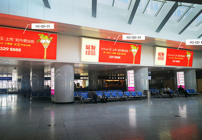 媒體位置/形式:二樓西候車室墻體燈箱 媒體編號(hào):HHHT-H2-QD-31-32 媒體數(shù)量:2塊(2塊/組) 媒體尺寸:6.4*1.8*1面、4.8*1.5*1面 媒體報(bào)價(jià):8萬元/月/組 |