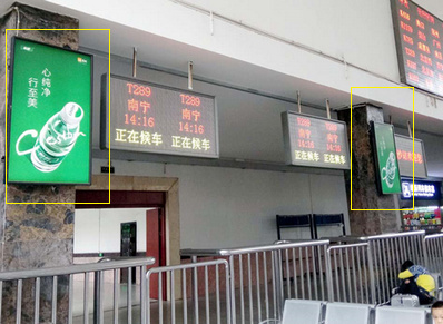 媒體位置:候車室壁掛刷屏 媒體尺寸:55英寸 媒體數(shù)量:14臺 播放頻次:190次/臺/天 媒體報(bào)價:1.48萬元/5秒/周,2.68萬元/10秒/周,3.68萬元/15秒/周 |