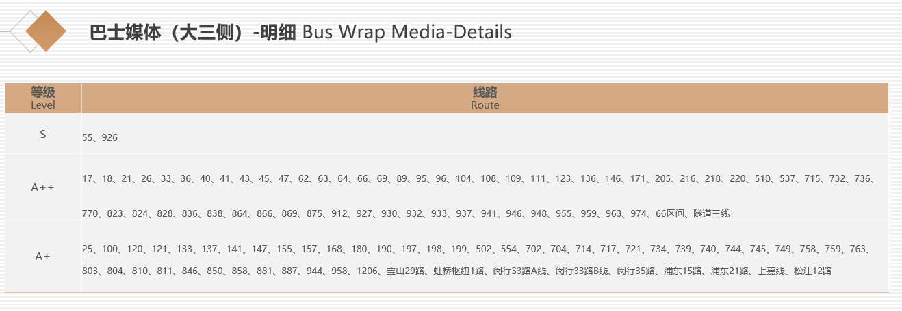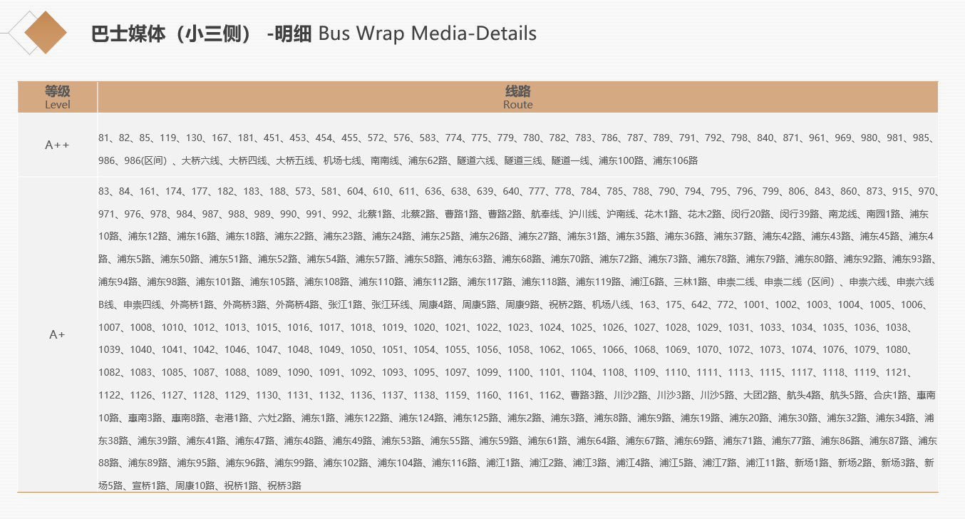 以上關(guān)于上海公交車廣告價格均為報價參考,具體折扣優(yōu)惠請咨詢第一戶外,電話:400-998-3268。