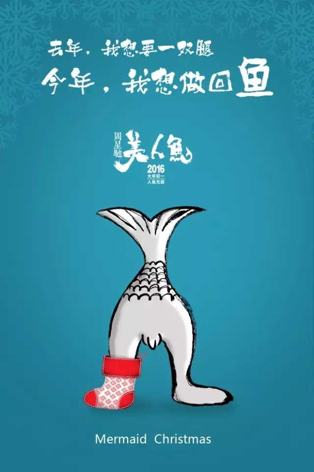 畫面中手繪人魚的元素,來自電影中鄧超與文章、李尚正的一段專為搞笑而搞笑的情節(jié)。由這3個元素衍生出來的物料也陸續(xù)在線下線上放出,比如這張圣誕節(jié)推出的微博稿。