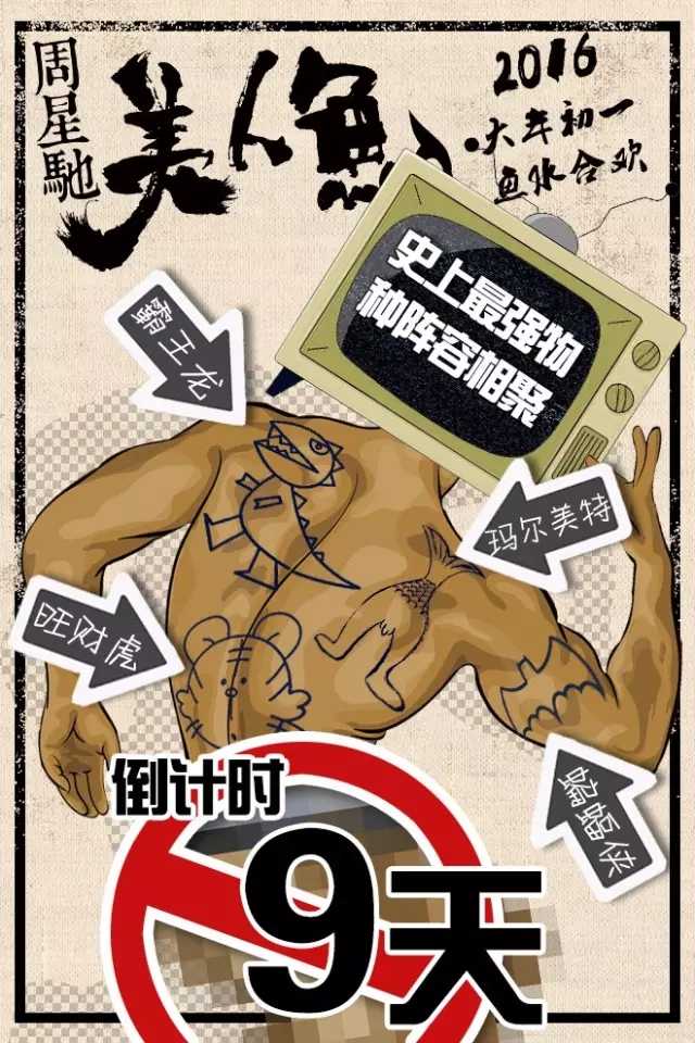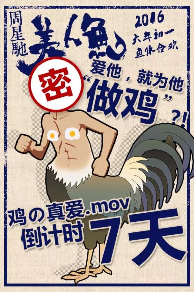 此海報為整部電影宣傳的第一槍,畫面中文案引用自毛澤東的詩詞《滿江紅·和郭沫若同志》。周星馳自小受母親影響,喜歡讀毛澤東詩詞,但此文案是否為星爺親自授意,請恕我們無法找星爺考證。