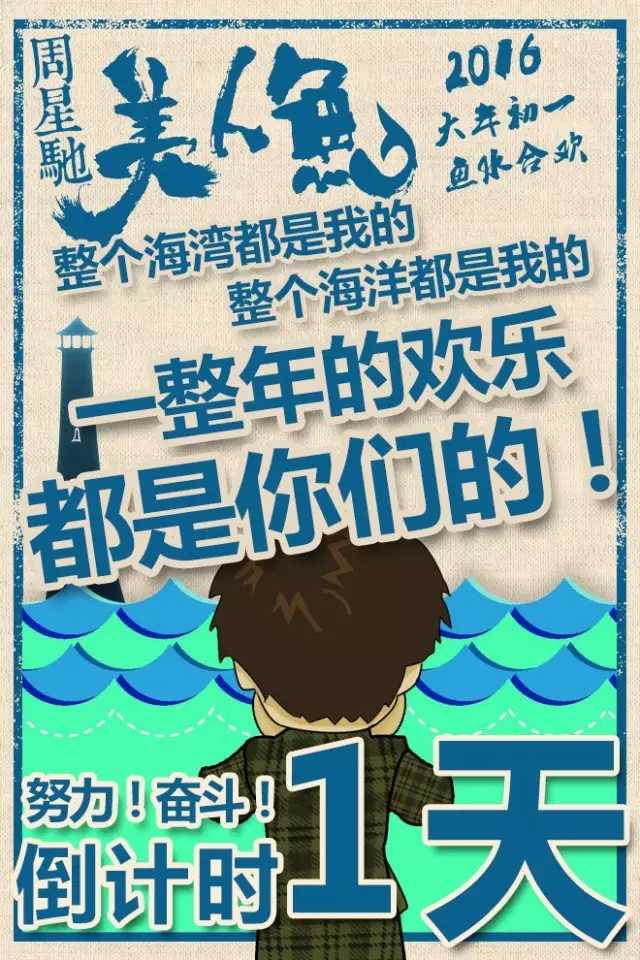 這一組公映倒計時海報,畫面延續(xù)了手繪風(fēng)格,文案都是由電影臺詞改編而來,并無太多出彩之處,倒是同時放出的一組以周星馳為主體的倒計時海報耐人尋味。