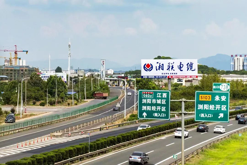 湖南省高速立柱大牌廣告案例,建材電纜高速廣告,高速公路廣告效果怎么樣?