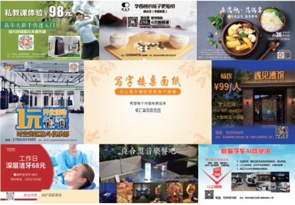 3、普及型推廣。據(jù)說有一種廣告,類似傳統(tǒng)的紙媒,直達白領(lǐng)。在白領(lǐng)吃午飯的時候廣告就出現(xiàn)在他們面前,這就是當(dāng)下非常受歡迎的工位紙媒廣告。一張A3大小的宣傳頁,圖文并茂,白領(lǐng)用餐時使用,廣告自然而然的引起關(guān)注,品牌宣傳推廣甚至轉(zhuǎn)化都可以有很好的想象空間。