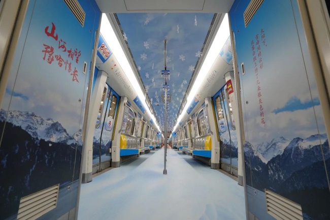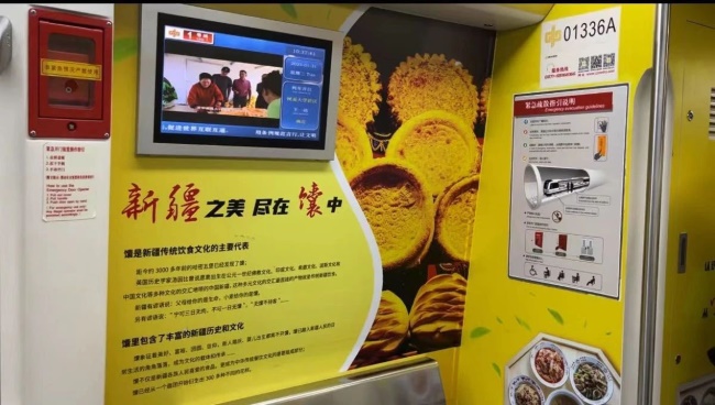 鄭州地鐵“哈密號(hào)”專列以新疆哈密的文旅元素、農(nóng)副特產(chǎn)品及非遺等為主題元素,重點(diǎn)推介“絲路名城 甜美哈密”品牌形象。鄭州地鐵全包內(nèi)包車廣告專列上懸掛、噴涂及滾動(dòng)播放著大海道、伊吾胡楊林、東天山景區(qū)等哈密市著名旅游景點(diǎn)的圖片和宣傳視頻,直觀展現(xiàn)出“大美新疆、甜美哈密”的獨(dú)特魅力,吸引廣大市民前往哈密旅游觀光。不僅僅是展示哈密美景,“哈密號(hào)”專列車廂通過懸掛雪花、葡萄等一些能展示哈密特色的裝飾物和整體涂裝來向綠城市民推介哈密的人文特產(chǎn)。