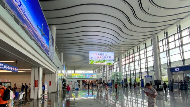 ? 出發(fā)大廳安檢口上方LED大屏:覆蓋全部出發(fā)旅客,動態(tài)展示效果好。