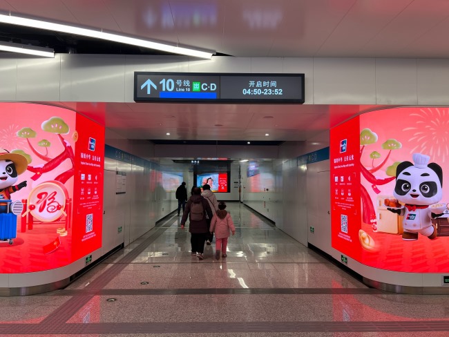 北京地鐵三元橋站站廳弧形LED大屏廣告