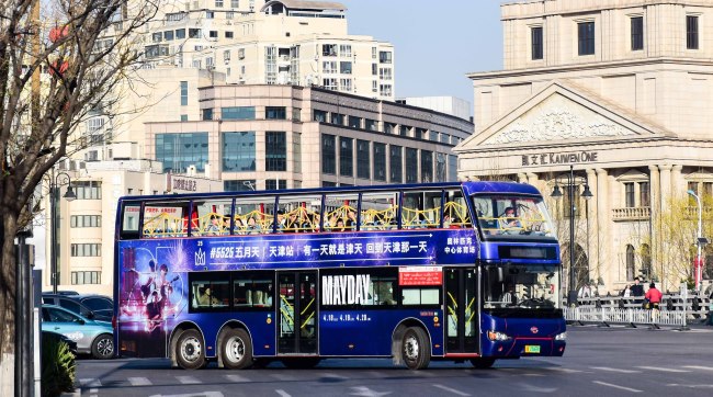 天津雙層觀光車身外車貼巴士廣告投放,天津公交車廣告價(jià)格