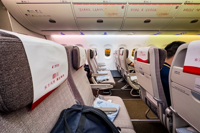 東方航空飛機客艙內(nèi)頭枕巾廣告