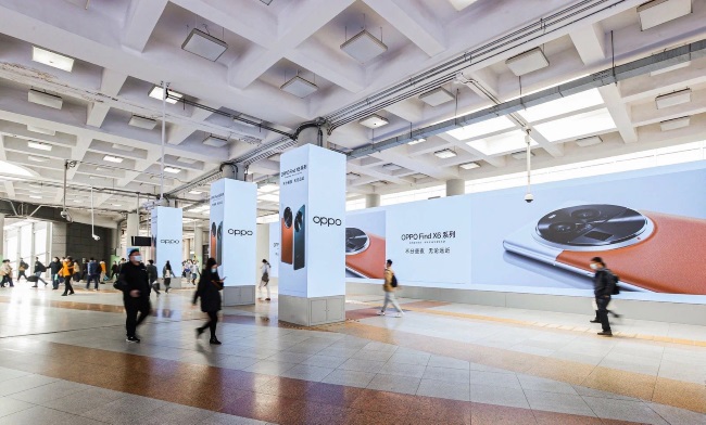 北京地鐵西直門站換區(qū)域電子連廊LED大屏廣告封閉連廊迫使乘客主動(dòng)探索視覺信息,超常規(guī)尺寸,形成連廊空間視覺軸心,10米視距下占據(jù)60°水平視野,畫面沖擊力相當(dāng)于6塊標(biāo)準(zhǔn)燈箱聚合體;4根包柱屏構(gòu)成環(huán)形火力網(wǎng),每柱4面屏合計(jì)16個(gè)播放單元,徹底封堵視覺回避路徑。廣告信息接收深度較開放空間提升400%。換乘行為觸發(fā)獨(dú)特心理窗口,步行動(dòng)線期平均主動(dòng)注視時(shí)長(zhǎng)12秒,信息焦慮催生廣告凝視需求。