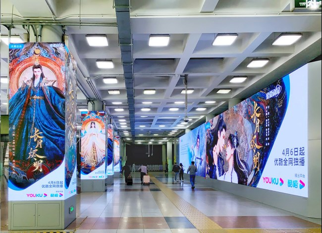北京地鐵西直門站換區(qū)域電子連廊LED大屏廣告