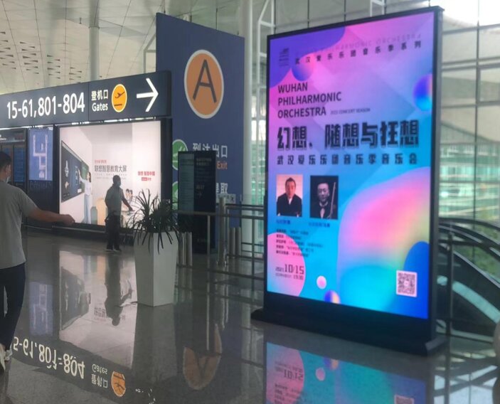 武漢機場T3航站樓豎式雙面落地燈箱廣告