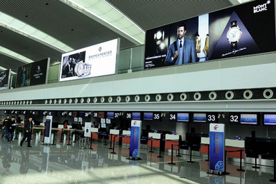 媒體位置/形式:T2辦票大廳安檢口上方高清LED大屏 媒體編號(hào):CF-D-01、CF-D-02 媒體尺寸:高450cm*寬800cm/塊 媒體數(shù)量:2塊 媒體報(bào)價(jià):10萬元/2塊/周 |