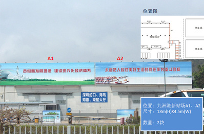 媒體位置:九洲港新站場大牌 媒體規(guī)格:A1、A2尺寸均為18*4.5米 客流量達:30多萬人次/日 車流量達:25多萬輛次/日 媒體報價:70萬元/年