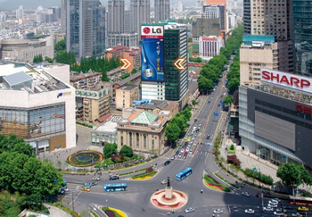 媒體位置說明: 位于南京中山東路與洪武路交匯處,是新街口商圈的東北門戶。周邊為南京金融核心區(qū),銀行、證券、保險(xiǎn)等金融機(jī)構(gòu)的江蘇總部或分行或旗艦式營業(yè)網(wǎng)點(diǎn)大多分布于此。緊鄰有悅薈廣場(chǎng)、國美電器、大眾書局、新街口步行街出口等,其日均人流量達(dá)50萬人次,節(jié)假日更達(dá)到80萬人次以上。 |