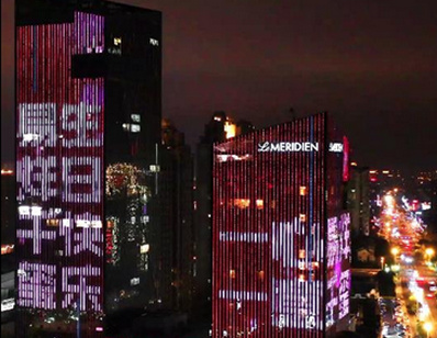 媒體位置:宜興市陽羨東路455號萬達富力樓體燈光秀 亮屏時間:17:30-22:30 規(guī)格:A座215、B座157,約51000㎡ 可視距離:1.6km 媒體報價:20萬/周(60次*15秒)、30萬/周(120次*15秒)