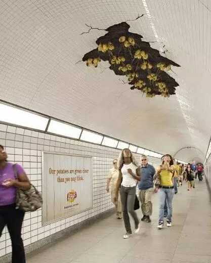 這廣告創(chuàng)意,簡直是腦洞大開呀!這地鐵通道頂部廣告也費了不少心血跟精力吧!肯定要做很久,良心之作!點贊!辛苦呀!