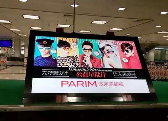 這家康輝精益眼鏡,為宣傳公司新推出的派麗蒙這款太陽眼鏡,不僅投放了全國幾大城市的機(jī)場廣告,還邀請(qǐng)鄭愷、陳偉霆、張翰、吳莫愁,迪麗熱巴五位新世代偶像,傾力打造明星設(shè)計(jì)款,滿載著設(shè)計(jì)者對(duì)藝術(shù)、夢想和未來的期待。下面我們就來看一看,他們的機(jī)場廣告上畫后的效果吧!