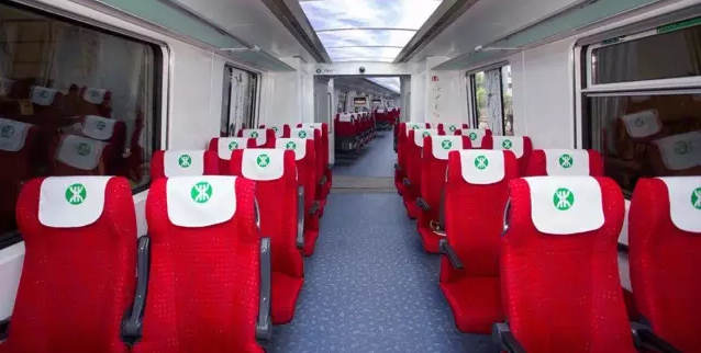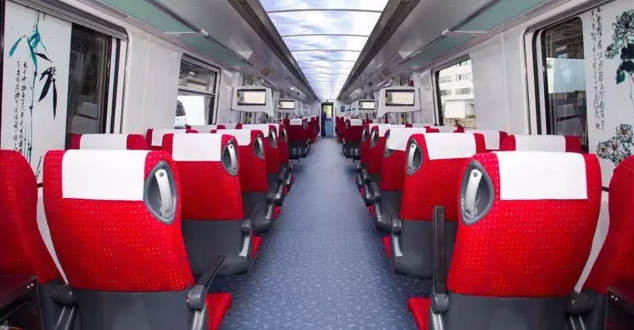 國內(nèi)首創(chuàng),機(jī)場專用車廂。 紅色座椅,舒適無比。 |