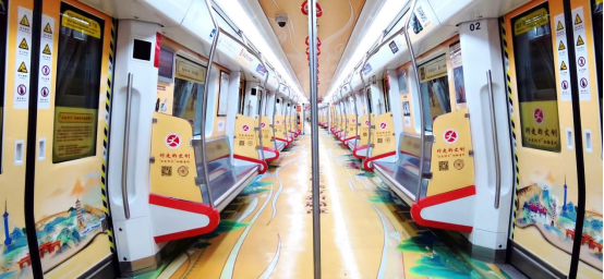 石家莊地鐵列車總長約140米,共6節(jié)車廂,單節(jié)列車長22.8米,車輛最寬處3.1米,沉浸式專列包括頂貼、地貼、門貼、墻貼等10處資源,總面積約916㎡,品牌可用展示空間大。