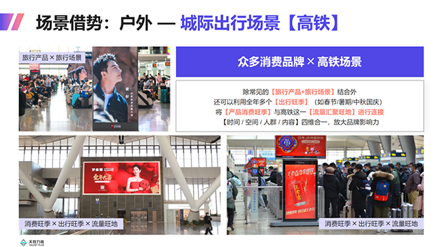 天然覆蓋海量受眾的真實場景,一直是戶外媒體相較于其他媒體的顯著優(yōu)勢。立足品牌特性,將傳播內(nèi)容與媒體場景有效融合,鏈接場景內(nèi)可感知的真實流量,借助戶外媒體一對多傳播的放大效應(yīng),進一步提升品牌在公域營銷的曝光效率,為品牌增勢賦能。