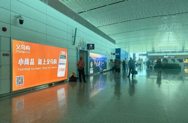 揭陽(yáng)潮汕機(jī)場(chǎng)義烏購(gòu)全新廣告畫(huà)面一改以往整塊橙黃底色,選用藍(lán)天背景和橙黃品牌顏色撞色呈現(xiàn),畫(huà)面非常醒目吸睛。既呈現(xiàn)了義烏小商品城的實(shí)景照片,也展示了義烏購(gòu)APP的手機(jī)界面,把義烏與線上購(gòu)物相結(jié)合?!靶∩唐?,就上義烏購(gòu)”,“Global Small Commodity Wholesale Platform”雙語(yǔ)Slogan,融合義烏購(gòu)APP及義烏購(gòu)國(guó)際商貿(mào)城聯(lián)合宣傳,更快、更精準(zhǔn)地傳播義烏購(gòu)品牌,讓義烏購(gòu)品牌形象再次受到全國(guó)乃至全球的矚目。