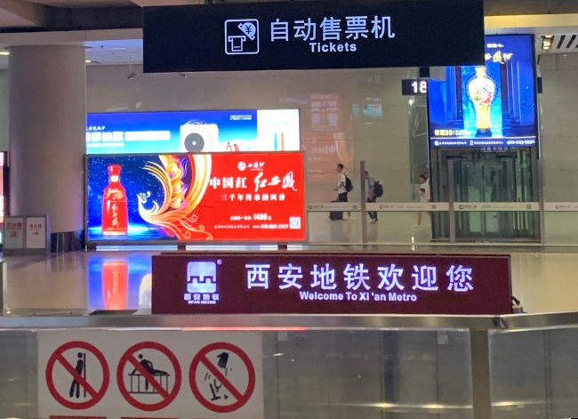 西安北站到達出站通道兩側燈箱廣告,西安北高鐵站大屏廣告價格