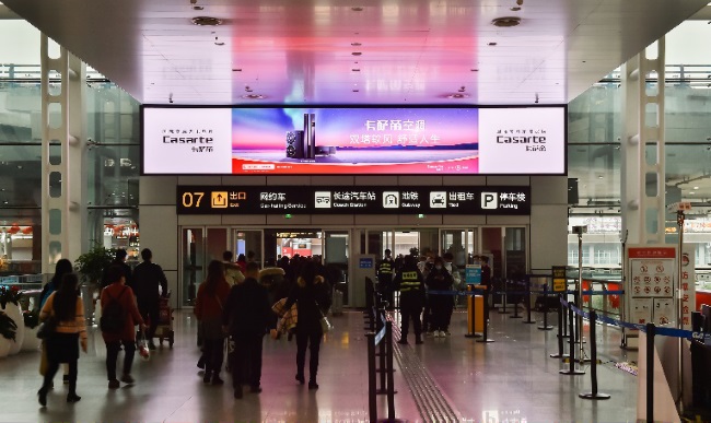 重慶機場國內(nèi)到達迎客廳出口高空LED大屏套裝廣告