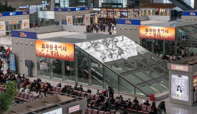 鄭州東站候車大廳檢票口玻璃墻面超薄燈箱廣告
