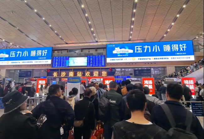 國慶假期,長沙火車南站客流持續(xù)處于高位運行,日均到發(fā)旅客達37萬余人次。長沙高鐵南站安檢大廳巨幕雙屏廣告從安檢大廳任意位置(安檢大廳入口、檢票口、安檢門、電梯、樓梯等)均可給旅客最強烈的視覺壓迫感和震撼感,具有極佳廣告視覺效果。今天帶大家了解下長沙南站廣告價格和進站口熱門廣告位推薦。