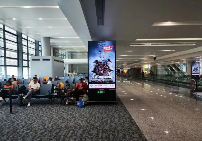 杭州機(jī)場(chǎng)T4國(guó)內(nèi)出發(fā)&到達(dá)區(qū)混流區(qū)LCD刷屏機(jī)套裝廣告