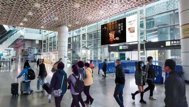 廣州南站到達(dá)層?xùn)|出站口上方墻面燈箱廣告