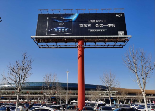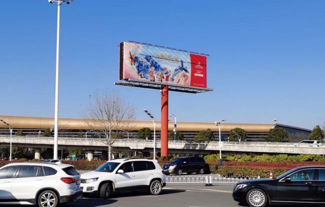 合肥機場航站樓戶外停車場入口面高立柱大牌廣告