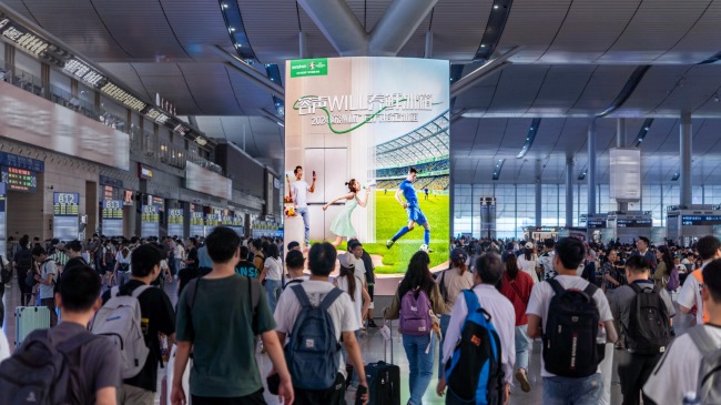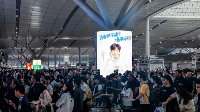 長(zhǎng)沙南站出發(fā)層候車大廳雙面落地?zé)粝?/b>廣告高度4.77m垂直高度匹配人體站立視野,雙面畫面同步覆蓋行進(jìn)與靜坐客流,無(wú)視覺盲區(qū)。西進(jìn)站口2塊媒體覆蓋70%進(jìn)站流量,觸達(dá)商務(wù)座旅客及VIP通道人群;其余8塊沿候車區(qū)線性排布,形成品牌信息長(zhǎng)廊,旅客往返商業(yè)區(qū)、衛(wèi)生間、服務(wù)臺(tái)等區(qū)域時(shí),至少3次穿越廣告輻射帶。封閉候車場(chǎng)景下,乘客信息接收干擾度較開放空間降低72%,廣告自然融入候車等待行為鏈。