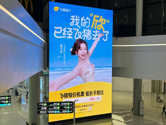 杭州機(jī)場T4迎客廳電梯井LED大屏廣告