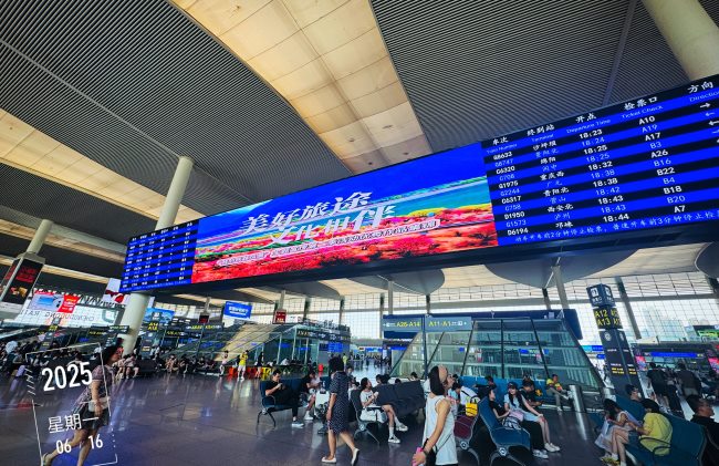 成都東站南進(jìn)站口上方候車大廳中央LED大屏廣告雙屏把守南進(jìn)站口安檢區(qū)以及候車廳中央檢票口雙要害節(jié)點(diǎn),實(shí)現(xiàn)100%旅客無死角觸達(dá)。安檢區(qū)大屏覆蓋進(jìn)站旅客首道安檢排隊(duì)期,觸發(fā)品牌首因效應(yīng);檢票口大屏截流候車廳核心區(qū)日均10萬+客流,檢票前焦慮期信息接收敏感度提升300%;雙屏同頻聯(lián)播單日輪播300次形成飽和攻擊,旅客滯留40分鐘內(nèi)至少接觸8次品牌信息。今天帶大家了解下成都東站高鐵廣告價(jià)格和熱門LED大屏位置推薦。